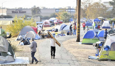 | Pictured above: is a temporary tent city setup on a Walmart parking lot, called 'Wallywood'; in Chico (Northern California) for those worst affected by the wildfires (like in Paradise town). |